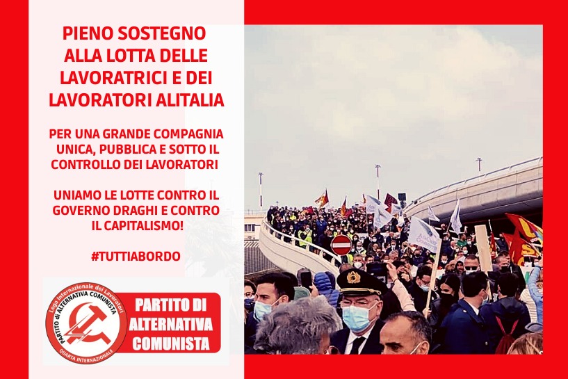 Chiaramente questa grande onda d’urto di migliaia di lavoratori per le strade, che sta costringendo le grandi burocrazie sindacali a rincorrere la propria base, deve diventare una costante e un patrimonio di questa lotta e non solo. I lavoratori Alitalia, anche in passato, ci hanno dimostrato che la loro unità, al di là della diversa collocazione sindacale, ha portato a importanti vittorie avvenute difendendo degli obiettivi ben precisi che in questo caso sono: rigettare la falsa nazionalizzazione di “Ita” - una compagnia già nata morta - e rivendicare una grande compagnia di bandiera unica, pubblica sotto il controllo dei lavoratori, senza nessun licenziamento. È importante che le colleghe e i colleghi diffidino delle istituzioni e dalle loro promesse, che creano solo illusioni all’interno di questo sistema socio economico basato sul profitto di pochi e sullo sfruttamento di milioni di lavoratori. I riformisti e i burocrati sindacali non potranno mai essere nostri alleati, sono coloro che alimentano l’illusione che in questo sistema si possano conciliare gli interessi di classe tra speculatori miliardari e lavoratori salariati, deviando le lotte in strade senza uscita. I nostri unici alleati, che ci possono aiutare nel vincere la nostra lotta, sono i lavoratori di altre categorie e settori a partire dal settore aereo, a cui dobbiamo fare appello ad unirsi alla nostra lotta come noi alle loro. Non ci può essere nulla di più potente dell’unione dei lavoratori in lotta contro gli attacchi dei padroni e del governo che mai, come in questa fase di crisi acuta, stanno sferrando un attacco senza precedenti ai lavoratori, al solo fine di mantenere i loro profitti in piena pandemia. Che siano i lavoratori a difendere Alitalia, che siano i lavoratori a porla sotto il loro controllo, che siano i lavoratori ad imporre l’unità delle lotte contro il governo Draghi e contro questo sistema che genera solo oppressione e sfruttamento!